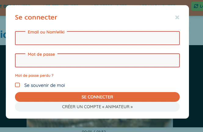 2- Cliquez sur : Se connecter puis sur Créer un compte Animateur