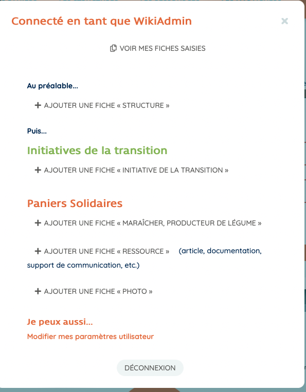 3 - Une fois votre compte créé, vous pouvez ajouter ou modifier du contenu, en cliquant à nouveau sur la roue crantée en haut à droite :